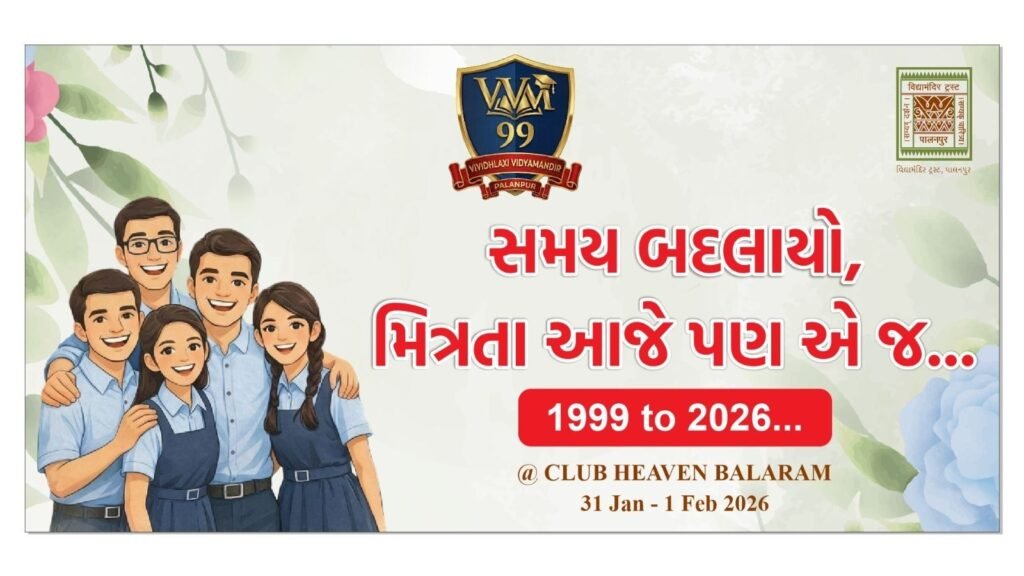 પાલનપુર શહેરની શિક્ષણ ક્ષેત્રે પ્રતિષ્ટિત સંસ્થા શ્રી વિવિધલક્ષી વિદ્યામંદિરના વર્ષ ૧૯૯૯ ની બેચના ભૂતપૂર્વ વિધાર્થીઓ દ્વારા સ્કૂલમાંથી અલગ થયે ૨૭ વર્ષ પછી યોજાયેલ સ્નેહ મિલનમાં ભૂતપૂર્વ વિદ્યાર્થીઓએ વહેંચી યાદોની સફર..